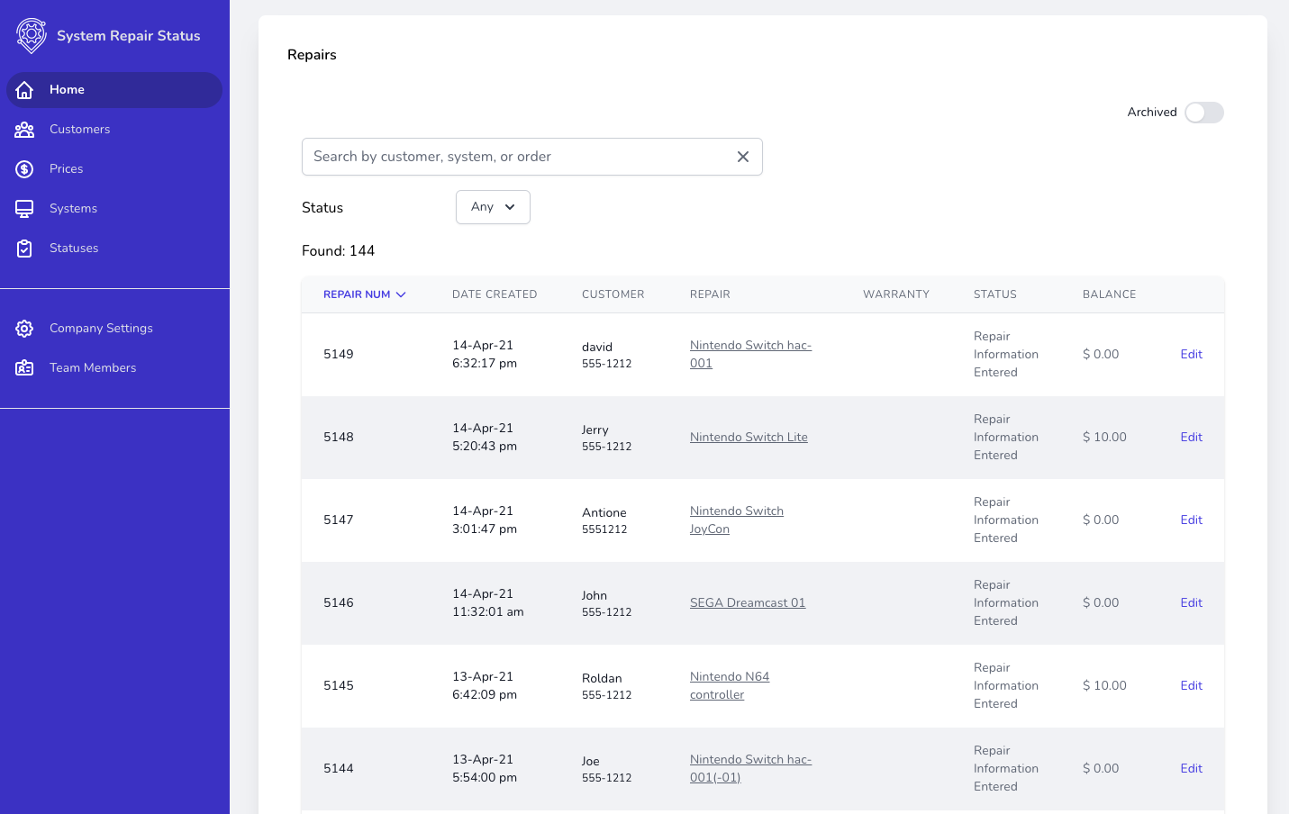 We developed this software for a small electronic repair shop. They loved it and we think you will too. Unlike other products in the market there are no monthly limits, and no ridiculous pricing. It's also not weighed down by all the features you don't need to run a small repair shop.